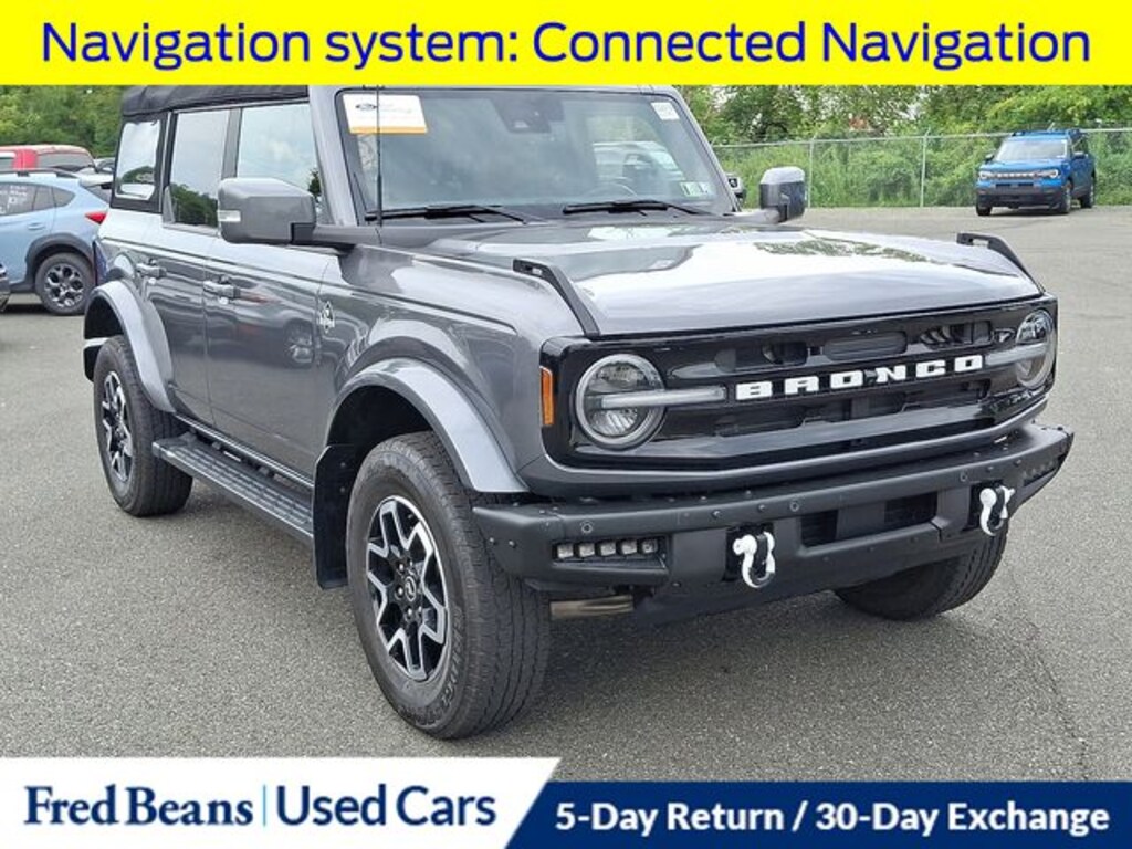 Recent Arrival! 2022 Ford Bronco Outer Banks 2.3L EcoBoost I-4 10-Speed Automatic 4WD 4D Sport Utility Carbonized Gray Metallic 12" LCD Capacitive Touchscreen w/Swipe Capability, 18" Bright Machined Aluminum Wheels, 360-Degree Camera, 4.27 Axle Ratio, Additional Sound Deadening, AM/FM radio: SiriusXM with 360L, Automatic temperature control, Dual-Zone Electronic Automatic Temperature Control, Equipment Group 313A High Package, Exterior Parking Camera Rear, Front Bucket Seats, Front fog lights, Front Parking Sensors, Heated door mirrors, Heated Leather-Trimmed/Vinyl Bucket Seats, Information on Demand Panel, Navigation system: Connected Navigation, Power door mirrors, Power windows, Remote keyless entry, Sideview Mirrors, Speed control, SYNC 4, Tilt steering wheel.