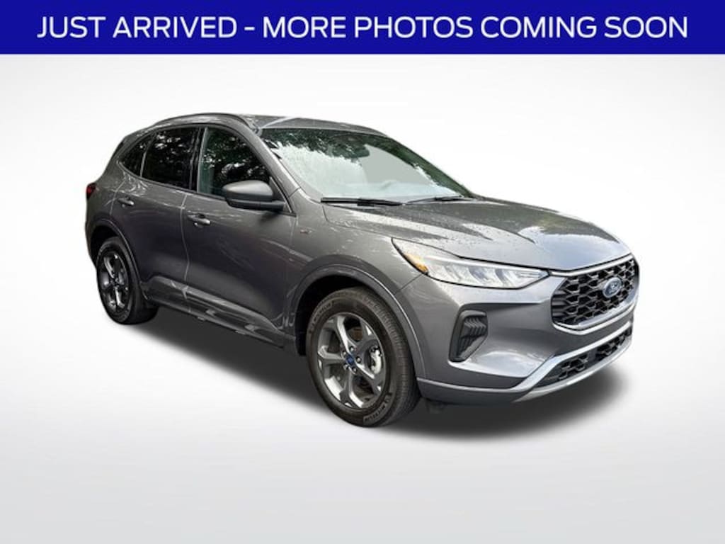 Recent Arrival! 2023 Ford Escape ST-Line 1.5L EcoBoost 8-Speed Automatic AWD 4D Sport Utility Gray Metallic 7 Year / 100k Powertrain Warranty, 12 Month / 12,000 Mile Comprehensive Warranty, Remainder of Factory Warranty, Factory Certified Vehicle, Free First Oil Change, 5 Day Return / 30 Day Exchange, Auto Reward Program, Ford Certified, AWD, 3.81 Axle Ratio, 4-Wheel Disc Brakes, 6 Speakers, ABS brakes, Air Conditioning, Alloy wheels, AM/FM radio: SiriusXM, AM/FM Stereo, Auto High-beam Headlights, Automatic temperature control, Brake assist, Bumpers: body-color, Compass, Connected Built-In Navigation, Delay-off headlights, Driver door bin, Driver vanity mirror, Dual front impact airbags, Dual front side impact airbags, Electronic Stability Control, Emergency communication system: SYNC 4 911 Assist, Equipment Group 300A, Exterior Parking Camera Rear, Ford Co-Pilot360 Assist+, FordPass Connect, Four wheel independent suspension, Front & Rear Floor Liners w/Carpet Mats, Front anti-roll bar, Front Bucket Seats, Front Center Armrest, Front dual zone A/C, Front reading lights, Fully automatic headlights, Heated door mirrors, Heated front seats, Heated steering wheel, Illuminated entry, Intelligent Adaptive Cruise Control w/Stop-and-Go, Knee airbag, Low tire pressure warning, Occupant sensing airbag, Outside temperature display, Overhead airbag, Overhead console, Panic alarm, Passenger door bin, Passenger vanity mirror, Power door mirrors, Power driver seat, Power Liftgate, Power steering, Power windows, Radio data system, Rear anti-roll bar, Rear Parking Sensor, Rear reading lights, Rear seat center armrest, Rear window defroster, Rear window wiper, Rear-View Camera, Remote keyless entry, Speed control, Speed Sign Recognition, Speed-sensing steering, Speed-Sensitive Wipers, Split folding rear seat, Spoiler, Sport steering wheel, Steering wheel mounted audio controls, SYNC 4, SYNC 4 w/Enhanced Voice Recognition, Tachometer, Tech Pack #1, Telescoping steering wheel, Tilt steering wheel, Traction control, Trip computer, Variably intermittent wipers, Vinyl/Cloth Front Sport Contour Bucket Seats, Wheels: 18" Rock Metallic Painted Aluminum, FORD GOLD CERTIFIED PRE-OWNED, AWD.