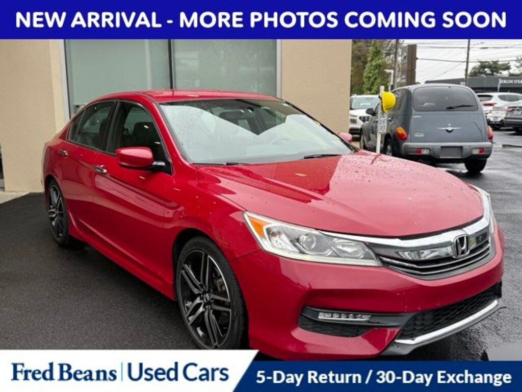 Recent Arrival! 2016 Honda Accord Sport 2.4L I4 DOHC i-VTEC 16V CVT FWD 4D Sedan Red Triton Certified Classic Vehicle, 3 Month / 4,000 Mile Comprehensive Warranty, Free First Oil Change, 5 Day Return / 30 Day Exchange, Auto Reward Program, Black Cloth, ABS brakes, Brake assist, Electronic Stability Control, Exterior Parking Camera Rear, Power driver seat, Power steering, Power windows, Remote keyless entry, Steering wheel mounted audio controls.