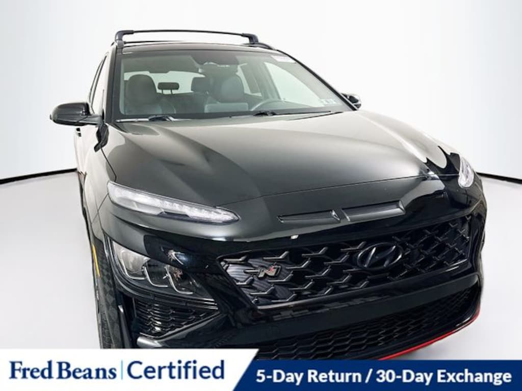 2022 Hyundai Kona N Base 2.0L I4 DGI DOHC 16V Turbocharged N 8-Speed Wet Dual Clutch FWD 4D Sport Utility Ultra Black Local Trade, Great Service History, Factory Certified Vehicle, Free First Oil Change, 5 Day Return / 30 Day Exchange, Auto Rewards Program, AM/FM radio: SiriusXM, Apple CarPlay & Android Auto, Auto High-beam Headlights, Automatic temperature control, Exterior Parking Camera Rear, harman/kardon® Speakers, Heated door mirrors, Heated front seats, Heated N Sport Front Bucket Seats, Illuminated entry, Leather Shift Knob, Leather steering wheel, Navigation System, Power door mirrors, Power driver seat, Remote keyless entry, Steering wheel mounted audio controls, Turn signal indicator mirrors, Wheels: 19" x 8.0J Alloy.