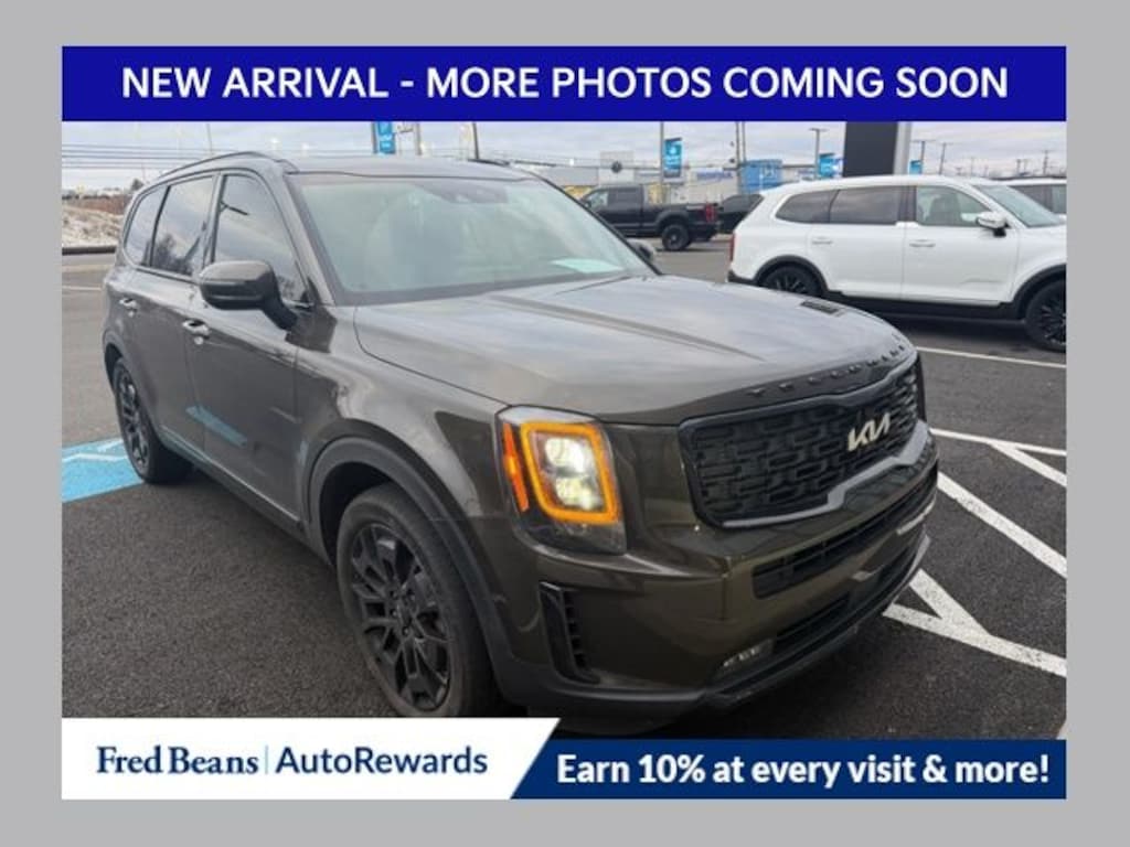 Recent Arrival! 2022 Kia Telluride SX 3.8L V6 DOHC 8-Speed Automatic AWD 4D Sport Utility Dark Moss 10 Speakers, 110V Inverter, 3.648 Axle Ratio, 3rd row seats: split-bench, 4-Wheel Disc Brakes, ABS brakes, Air Conditioning, Alloy wheels, AM/FM radio: SiriusXM, Apple CarPlay & Android Auto, Auto High-beam Headlights, Auto-dimming Rear-View mirror, Automatic temperature control, Black Finish Radiator Grille, Body Color Exterior Door Handles, Brake assist, Bumpers: body-color, Cargo Cover, Cargo Seatback Up Mat, Carpeted Floor Mats, Compass, Delay-off headlights, Driver door bin, Driver vanity mirror, Dual front impact airbags, Dual front side impact airbags, Electronic Stability Control, Emergency communication system: 911 Connect, Exclusive Black Fog Light Bezel, Exclusive Black Headlight Bezels, Four wheel independent suspension, Front & Rear Gloss Black Finish Bumper Skid Plates, Front anti-roll bar, Front Bucket Seats, Front Center Armrest, Front dual zone A/C, Front fog lights, Front reading lights, Fully automatic headlights, Garage door transmitter: HomeLink, Gloss Black Finish Exterior Emblems, Gloss Black Finish Front & Rear Door Garnish, Gloss Black Finish Roof Rails, harman/kardon® Speakers, Heads-Up Display, Heated & Ventilated 2nd Row Seats, Heated & Ventilated Front Bucket Seats, Heated door mirrors, Heated front seats, Heated steering wheel, Hybrid Cargo Net, Illuminated entry, Knee airbag, Leather Seat Trim, Leather Shift Knob, Leather steering wheel, Low tire pressure warning, Memory seat, Navigation System, Nightfall Edition Package, Occupant sensing airbag, Outside temperature display, Overhead airbag, Overhead console, Panic alarm, Passenger door bin, Passenger vanity mirror, Power door mirrors, Power driver seat, Power Liftgate, Power moonroof, Power passenger seat, Power steering, Power windows, Premium Cloth Headliner & Pillar Trim, Premium Nappa Leather Seat Trim, Radio data system, Radio: AM/FM harman/kardon Audio System, Rain-Sensing Front Windshield Wipers, Rear air conditioning, Rear anti-roll bar, Rear audio controls, Rear reading lights, Rear window defroster, Rear window wiper, Reclining 3rd row seat, Remote keyless entry, Roof rack: rails only, Security system, Self Leveling Rear Suspension, Smart Key w/ Push Button and Remote Start, Speed control, Speed-sensing steering, Split folding rear seat, Spoiler, Steering wheel mounted audio controls, SX Dune Brown Nappa Leather Seats, SX Prestige Package, Tachometer, Telescoping steering wheel, Tilt steering wheel, Tow Hitch w/Harness (TOF), Towing Package, Traction control, Trip computer, Turn signal indicator mirrors, Variably intermittent wipers, Ventilated front seats, Wheels: 20" x 7.5" Black Alloy, Wheels: 20" x 7.5" Exclusive Black Alloy.