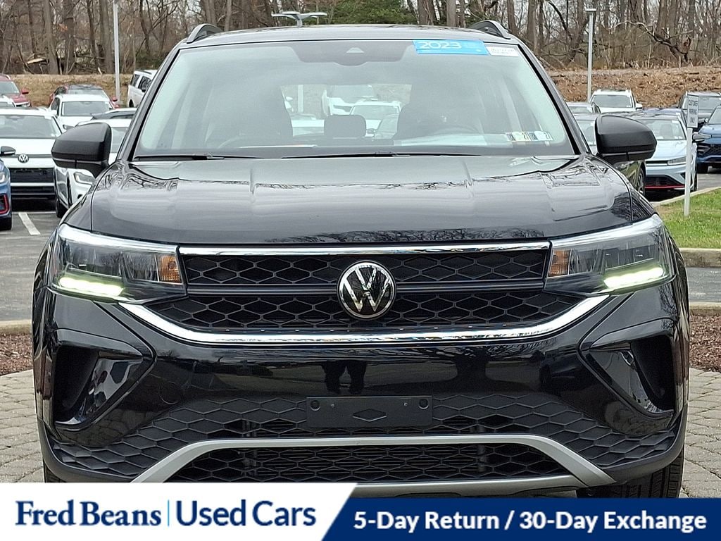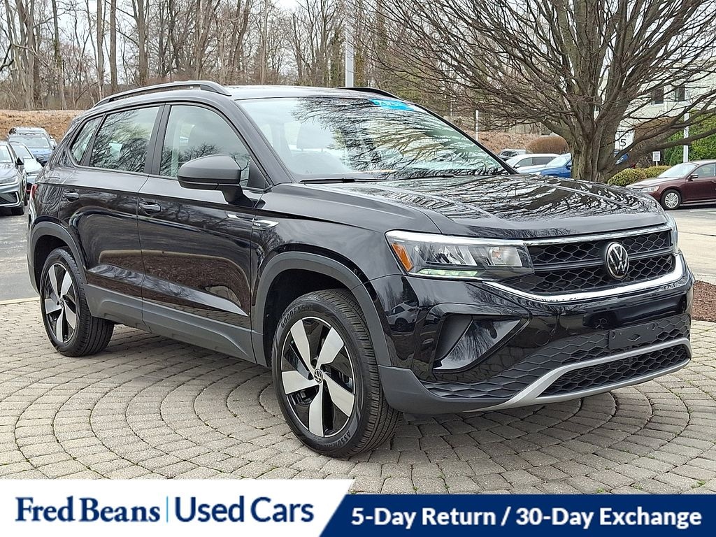 Recent Arrival! 2023 Volkswagen Taos 1.5T S 1.5L I4 Turbocharged DOHC 16V LEV3-SULEV30 158hp 7-Speed DSG Automatic with Tiptronic AWD 4D Sport Utility Deep Black Pearl Great Service History, Remainder of Factory Warranty, Factory Certified Vehicle, Adaptive Cruise Control (ACC) w/Stop & Go, Convenience Features, Driver Assistance Package, Emergency Assist, Lane Assist (Lane Keeping System), Travel Assist (Semi-Automated Driving Assistance).