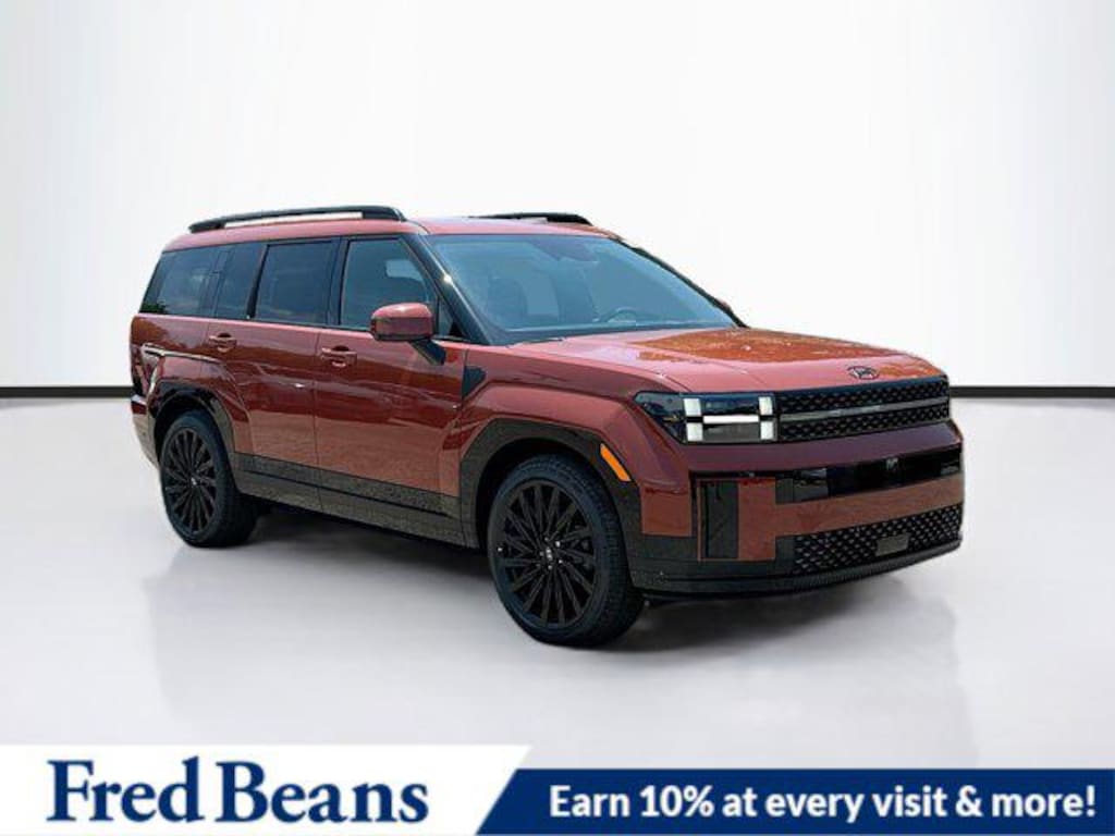 Terracotta Orange 2024 Hyundai Santa Fe Calligraphy AWD Shiftronic 2.5L I4 12 Speakers, 3rd row seats: bench, 4-Wheel Disc Brakes, ABS brakes, Air Conditioning, Alloy wheels, AM/FM radio: SiriusXM, Apple CarPlay & Android Auto, Auto High-beam Headlights, Auto-dimming Rear-View mirror, Automatic temperature control, Axle Ratio: 3.316, Brake assist, Bumpers: body-color, Cargo Net, Carpeted Floor Mats, Delay-off headlights, Driver door bin, Driver vanity mirror, Dual front impact airbags, Dual front side impact airbags, Electronic Stability Control, Emergency communication system, Exterior Parking Camera Rear, First Aid Kit, Four wheel independent suspension, Front anti-roll bar, Front Bucket Seats, Front Center Armrest, Front dual zone A/C, Front reading lights, Fully automatic headlights, Garage door transmitter: HomeLink, Heads-Up Display, Heated & Ventilated Front Bucket Seats, Heated door mirrors, Heated front seats, Heated rear seats, Heated steering wheel, Illuminated entry, Knee airbag, Leather steering wheel, Low tire pressure warning, Memory seat, Navigation System, Occupant sensing airbag, Option Group 01, Outside temperature display, Overhead airbag, Overhead console, Panic alarm, Passenger door bin, Passenger vanity mirror, Power door mirrors, Power driver seat, Power Liftgate, Power moonroof, Power passenger seat, Power steering, Power windows, Quilted Premium Nappa Leather Seat Trim, Radio: AM/FM/HD Bose Premium Audio System, Rain sensing wipers, Rear anti-roll bar, Rear side impact airbag, Rear window defroster, Rear window wiper, Remote keyless entry, Security system, Speed control, Speed-sensing steering, Split folding rear seat, Spoiler, Steering wheel mounted audio controls, Tachometer, Telescoping steering wheel, Tilt steering wheel, Traction control, Trip computer, Turn signal indicator mirrors, Variably intermittent wipers, Ventilated front seats, Wheel Locks, Wheels: 21" x 8.5J Unique Dark Finish Alloy.