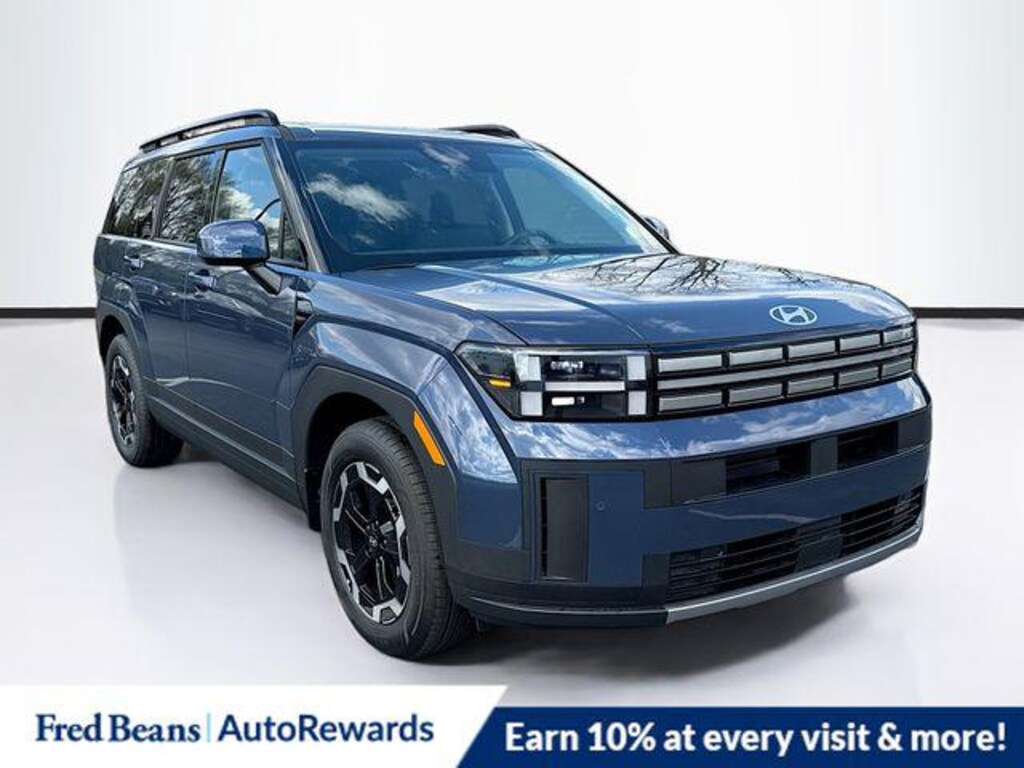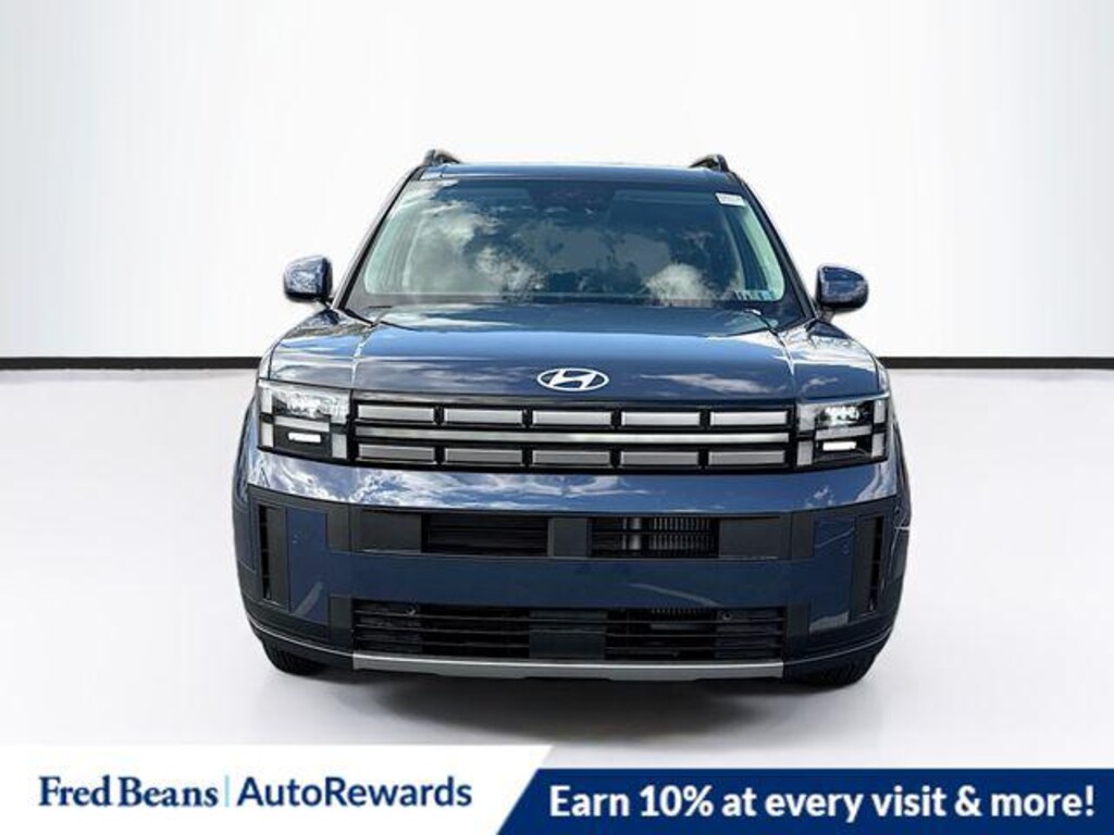 Atlantis Blue 2026 Hyundai Santa Fe SEL AWD 8-Speed Automatic with SHIFTRONIC 2.5L I4 AWD, Black Premium Synthetic, 18" x 7.5J Alloy Wheels, 3rd row seats: bench, 4-Wheel Disc Brakes, 6 Speakers, ABS brakes, Air Conditioning, Alloy wheels, AM/FM radio: SiriusXM, Apple CarPlay & Android Auto, Auto High-beam Headlights, Automatic temperature control, Brake assist, Bumpers: body-color, Cargo Cover/Screen, Cargo Net, Cargo Tray, Carpeted Floor Mats, Delay-off headlights, Driver door bin, Driver vanity mirror, Dual front impact airbags, Dual front side impact airbags, Electronic Stability Control, Emergency communication system, Exterior Parking Camera Rear, First Aid Kit, Four wheel independent suspension, Front anti-roll bar, Front Bucket Seats, Front Center Armrest, Front dual zone A/C, Front reading lights, Fully automatic headlights, H-Tex Leatherette Seat Trim, Heated door mirrors, Heated Front Bucket Seats, Heated front seats, Illuminated entry, Knee airbag, Leather steering wheel, Low tire pressure warning, Mudguards, Occupant sensing airbag, Option Group 01, Outside temperature display, Overhead airbag, Overhead console, Panic alarm, Passenger door bin, Passenger vanity mirror, Power door mirrors, Power driver seat, Power Liftgate, Power steering, Power windows, Radio: AM/FM/HD Display Audio, Rear anti-roll bar, Rear seat center armrest, Rear side impact airbag, Rear window defroster, Rear window wiper, Remote keyless entry, Security system, Speed control, Speed-sensing steering, Split folding rear seat, Spoiler, Steering wheel mounted audio controls, Tachometer, Telescoping steering wheel, Tilt steering wheel, Traction control, Trip computer, Turn signal indicator mirrors, Variably intermittent wipers, AWD, Black Premium Synthetic.