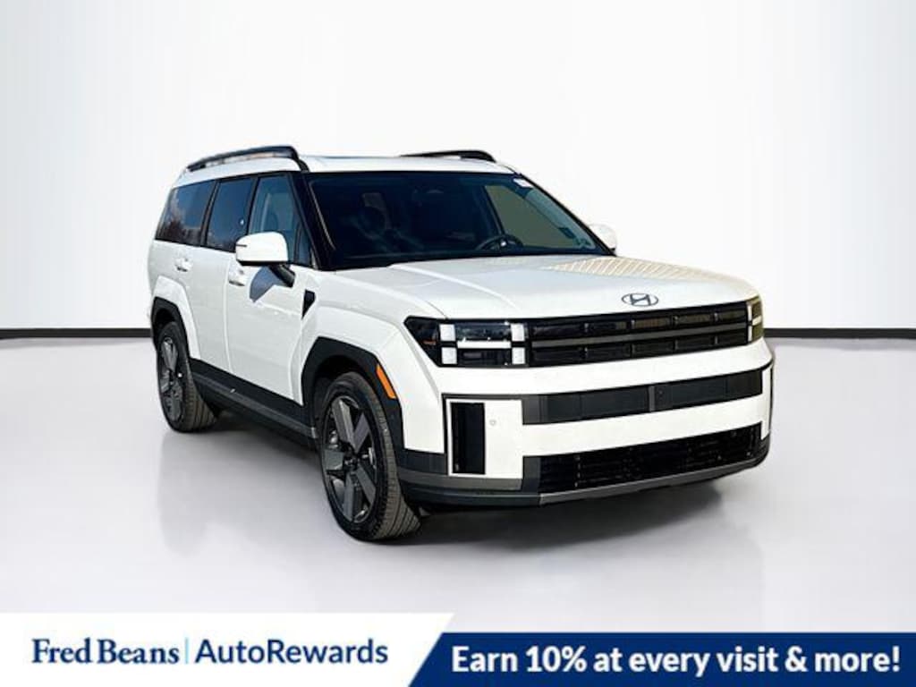 Serenity White 2026 Hyundai Santa Fe Hybrid Limited AWD 6-Speed Automatic with Shiftronic I4 I4, 12 Speakers, 3rd row seats: bench, 4-Wheel Disc Brakes, 7-Passenger Bench Seating, ABS brakes, Air Conditioning, Alloy wheels, AM/FM radio: SiriusXM, Apple CarPlay & Android Auto, Auto High-beam Headlights, Auto-dimming Rear-View mirror, Automatic temperature control, Brake assist, Bumpers: body-color, Cargo Blocks, Cargo Cover/Screen, Cargo Net, Cargo Tray, Carpeted Floor Mats, Delay-off headlights, Driver door bin, Driver vanity mirror, Dual front impact airbags, Dual front side impact airbags, Electronic Stability Control, Emergency communication system, Exterior Parking Camera Rear, First Aid Kit, Four wheel independent suspension, Front anti-roll bar, Front Bucket Seats, Front Center Armrest, Front dual zone A/C, Front reading lights, Fully automatic headlights, Garage door transmitter: HomeLink, Heated & Ventilated Front Bucket Seats, Heated door mirrors, Heated front seats, Heated rear seats, Heated steering wheel, Illuminated entry, Knee airbag, Leather Seat Trim, Leather steering wheel, Low tire pressure warning, Memory seat, Navigation System, Occupant sensing airbag, Option Group 02, Outside temperature display, Overhead airbag, Overhead console, Panic alarm, Passenger door bin, Passenger vanity mirror, Power door mirrors, Power driver seat, Power Liftgate, Power moonroof, Power passenger seat, Power steering, Power windows, Radio: AM/FM/HD Bose Premium Audio System, Rain sensing wipers, Rear anti-roll bar, Rear side impact airbag, Rear window defroster, Rear window wiper, Remote keyless entry, Security system, Speed control, Speed-sensing steering, Split folding rear seat, Spoiler, Steering wheel mounted audio controls, Tachometer, Telescoping steering wheel, Tilt steering wheel, Traction control, Trip computer, Turn signal indicator mirrors, Variably intermittent wipers, Ventilated front seats, Wheels: 20" x 8.5J Alloy, I4. Price includes: $4250 - Hyundai HMF Dealer Choice : $4250 discount and 5.49% APR for 24 months. $44.09 per $1000 financed. Available to well qualified buyers who finance through Hyundai Motor Finance. H704. Exp. 12/01/2025