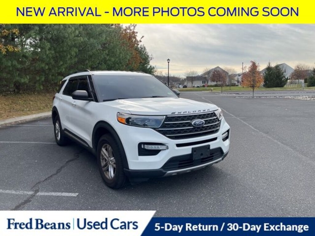 Recent Arrival! 2022 Ford Explorer XLT 2.3L EcoBoost I-4 10-Speed Automatic 4WD 4D Sport Utility Star White Metallic Tri-Coat Local Trade, 3rd row seats: bench, Acoustic-Laminated Front Side Windows, ActiveX Captain's Chairs, AM/FM radio: SiriusXM, Automatic temperature control, Class IV Trailer Tow Package, Equipment Group 202A, Exterior Parking Camera Rear, Front Center Armrest, Front dual zone A/C, Heated door mirrors, Heated front seats, Heated Steering Wheel, LED Fog Lamps, Power door mirrors, Power driver seat, Power Liftgate, Power passenger seat, Power windows, Rear air conditioning, Rear window defroster, Rear window wiper, Remote keyless entry, Remote Start System, SecuriCode Keyless Entry Keypad, Speed control, SYNC 3 Communications & Entertainment System, SYNC 3/Apple CarPlay/Android Auto, Tilt steering wheel, Wheels: 18" 5-Spoke Silver-Painted Aluminum. 20/27 City/Highway MPG