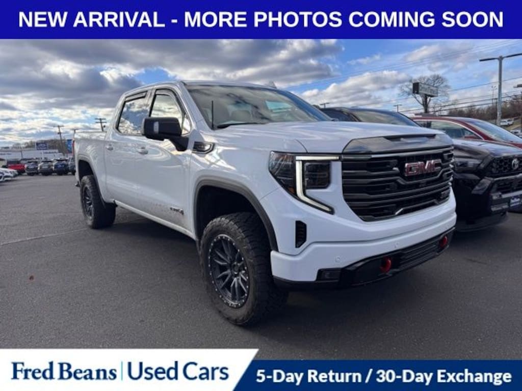 Recent Arrival! 2022 GMC Sierra 1500 AT4 EcoTec3 6.2L V8 10-Speed Automatic 4WD 4D Crew Cab Summit White 10-Speed Automatic, 4WD, Jet Black With Kalahari Accents Leather, 10-Way Power Driver Seat Adjuster w/Lumbar, 10-Way Power Passenger Seat Adjuster w/Lumbar, 120-Volt Bed Mounted Power Outlet, 120-Volt Instrument Panel Power Outlet, 170 Amp Alternator, 18" x 8.5" Machined Aluminum Wheels, 2 Charge/Data USB Ports Inside Center Console, 2 Type-C Charge-Only Rear USB Ports, 2 USB Ports, 220 Amp Alternator, 3.23 Rear Axle Ratio, 4-Wheel Disc Brakes, 7 Speakers, ABS brakes, Adaptive Cruise Control, Air Conditioning, Alloy wheels, AM/FM radio: SiriusXM with 360L, Apple CarPlay/Android Auto, AT4 Preferred Package, AT4 Premium Package, Auto High-beam Headlights, Auto-dimming door mirrors, Auto-dimming Rear-View mirror, Auto-Locking Rear Differential, Automatic Emergency Braking, Automatic temperature control, Auxiliary External Transmission Oil Cooler, Bed View Camera, Black Chrome Header & Grille Insert Bars, Block heater, Brake assist, Buckle to Drive, Bumpers: body-color, Color-Keyed Carpeting Floor Covering, Compass, Deep-Tinted Glass, Delay-off headlights, Driver door bin, Driver Memory, Driver vanity mirror, Dual front impact airbags, Dual front side impact airbags, Electric Rear-Window Defogger, Electrical Steering Column Lock, Electronic Stability Control, Emergency communication system: OnStar and GMC Connected Services capable, Engine Block Heater, External Engine Oil Cooling, Floor-Mounted Center Console, Following Distance Indicator, Forward Collision Alert, Front anti-roll bar, Front Bucket Seats, Front Center Armrest, Front dual zone A/C, Front fog lights, Front License Plate Kit, Front Pedestrian Braking, Front Prem Floor Liners w/Removable Carpet Insert, Front Rainsensing Wipers, Front reading lights, Front wheel independent suspension, Fully automatic headlights, GMC Connected Access Capable, HD Rear Vision Camera, HD Surround Vision, Heated 2nd Row Outboard Seats, Heated door mirrors, Heated Driver & Front Outboard Passenger Seating, Heated front seats, Heated rear seats, Heated Steering Wheel, Heated steering wheel, Heavy-Duty Air Filter, Hill Descent Control, Hitch Guidance, Hitch Guidance w/Hitch View, Illuminated entry, In-Vehicle Trailering App, Integrated Trailer Brake Controller, IntelliBeam Automatic High Beam On/Off, Keyless Open & Start, Lane Keep Assist w/Lane Departure Warning, LED Cargo Area Lighting, Low tire pressure warning, Memory seat, Multicolor 15" Diagonal Head-Up Display, Navigation System, Not Equip w/Heat & Vent Seat Cushion Blower Motor, Not Equipped w/Front & Rear Park Assist, Not Equipped w/Steering Column Lock, Occupant sensing airbag, Off-Road High Clearance Step (LPO), Off-Road Suspension, OnStar & GMC Connected Services Capable, Outside temperature display, Overhead airbag, Overhead console, Panic alarm, Passenger door bin, Passenger vanity mirror, Perforated Front Leather Seat Trim, Perimeter Lighting, Power Door Locks, Power door mirrors, Power driver seat, Power Front Passenger Windows w/Express Up/Down, Power Front Windows w/Driver Express Up/Down, Power passenger seat, Power Rake & Telescoping Steering Column, Power Rear Windows w/Express Down, Power Sliding Rear Window w/Rear Defogger, Power steering, Power Sunroof, Power windows, Preferred Equipment Group 4SB, Premium audio system: GMC Infotainment System, Premium Bose 7-Speaker Sound System, Push Button Start, Radio data system, Radio: Premium GMC Infotainment Audio System, Rain sensing wipers, Rear Camera Mirror, Rear Cross Traffic Braking, Rear Pedestrian Detection, Rear Prem Floor Liners w/Removable Carpet Insert, Rear reading lights, Rear seat center armrest, Rear step bumper, Rear Wheelhouse Liners, Rear window defroster, Red Recovery Hooks, Remote keyless entry, Remote Vehicle Starter System, Safety Alert Seat, Security system, Sierra Safety Plus Package, SiriusXM w/360L, Speed control, Speed-sensing steering, Split fold