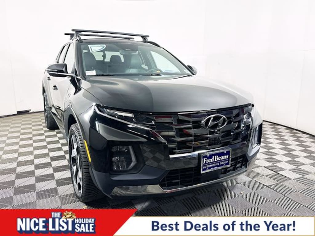 Recent Arrival! 2023 Hyundai Santa Cruz Limited 2.5L I4 Shiftronic AWD 4D Crew Cab Phantom Black Free First Oil Change, 5 Day Return / 30 Day Exchange, Auto Reward Program, Santa Cruz Limited, 4D Crew Cab, 2.5L I4, Shiftronic, AWD, Phantom Black, Black Leather.